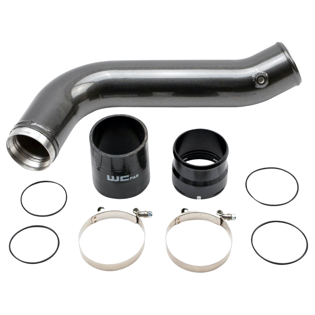 The 3.5" High Flow Passenger Side Intercooler Pipe for 2020 L5P Duramax replaces the factory plastic two piece pipe with a high flow, 14 ga. aluminum one piece 3.5" pipe.